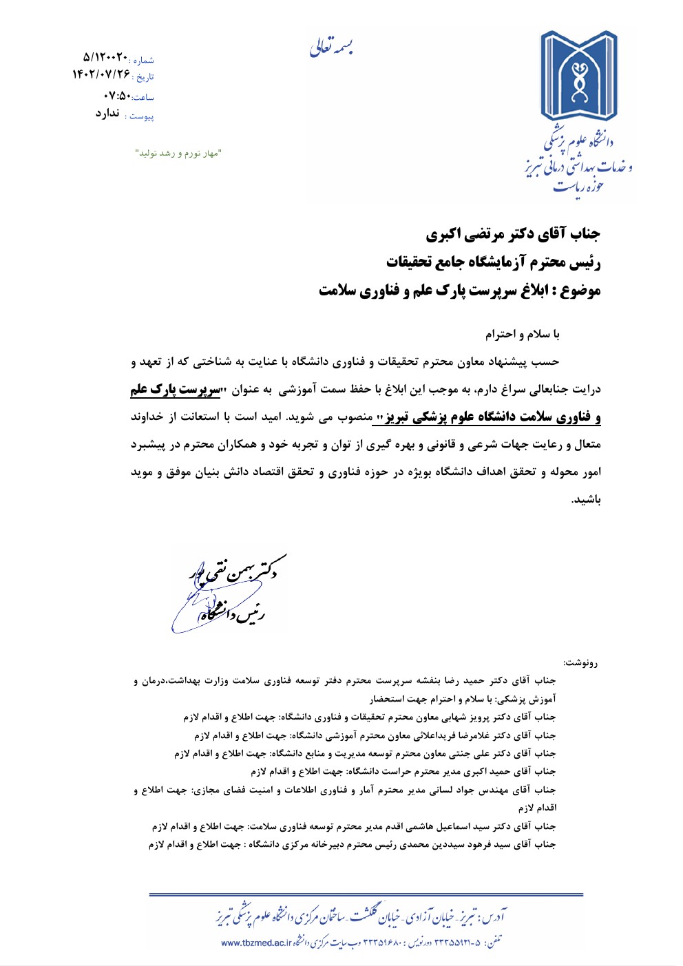 بعنوان سرپرست پارک علم و فناوری سلامت